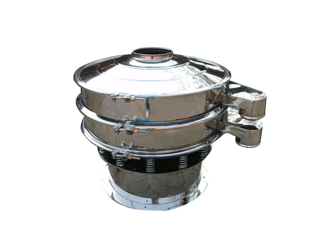 旋振篩(圓形振動篩)由立式振動電機作激振源,因為其上下端重錘安裝在發動軸兩側,使電機的旋轉運動轉變為垂直、水平、傾斜的三次元運動。  旋振篩產品特點:  設計精巧,耐用,適合任何粉類以及粘性液體的篩分。  操作簡單,換網方便,易于清洗。  篩網無阻塞,粉末無飛揚。  雜質以及粗料自動排出,并且可以與給料設備、輸送設備配套使用,處理量大,生產效率高?! 〕叽缧。澥】臻g,易于移動。  易于養護,可單層或多層使用。  篩網設計合理耐用,換網只需3-5分鐘?! 『Y網可達5層,篩分出6種不同顆粒大小的物料